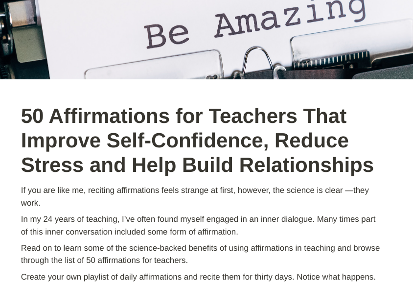 50 Affirmations for Teachers That Improve Self-Confidence, Reduce Stress and Help Build Relationships